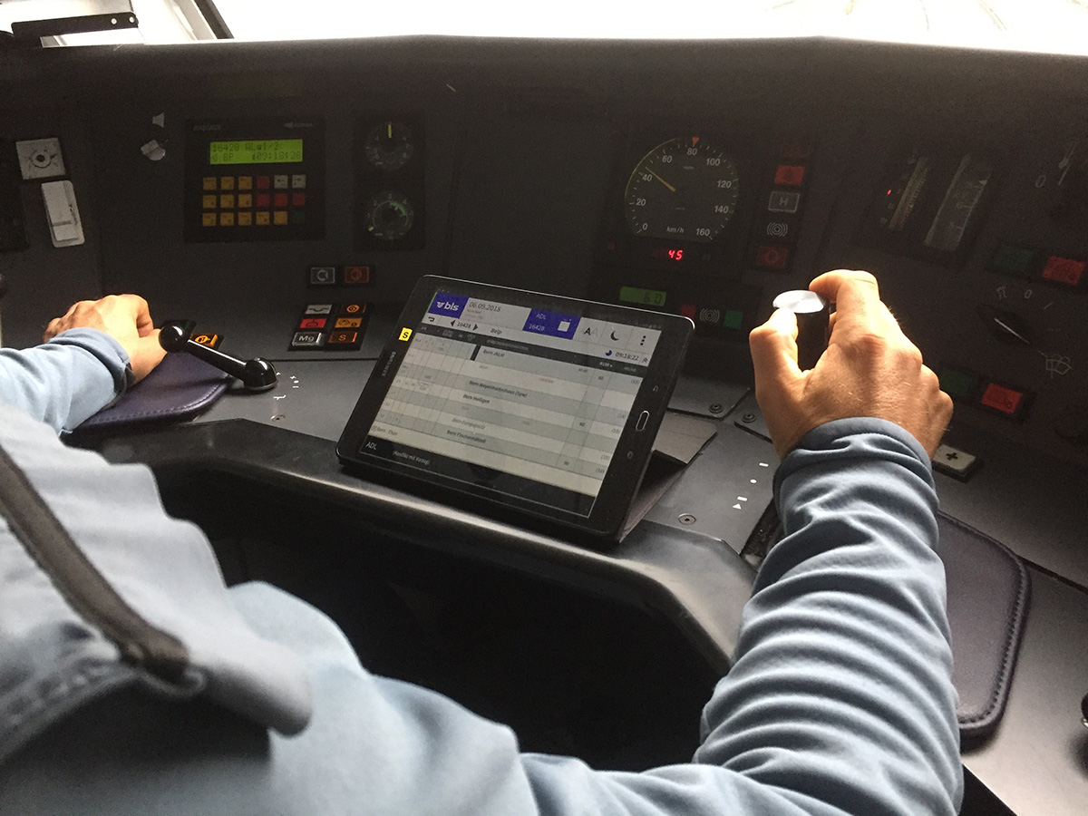Arbeitspsychologinnen und -psychologen erarbeiteten Massnahmen zur sicheren Nutzung von Arbeitsmitteln wie Smartphones und Tablets durch Lokführerinnen und Lokführern im Führerstand.