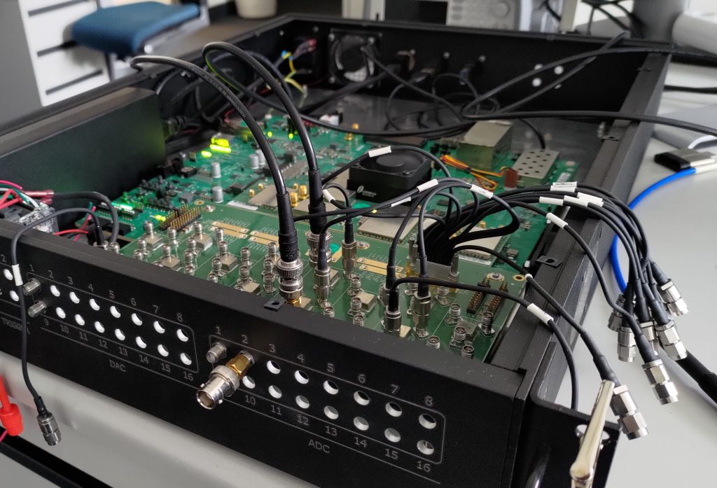 Um diesen Kalibrierprozess ging es in der Bachelorthesis von Robin Müller: Der Prozess solle auf der Basis eines RF-SoC-FPGAs („Zync“ Baustein von AMD-Xilinx) implementiert und damit gegenüber der bisherigen Lösung massiv beschleunigt werden. Verwendet wurde ein „Field Programable Gate Array“ (FPGA) Baustein der „Zync“-Familie von AMD-Xilinx, der Hochfrequenzsignale („Radiofrequency“, RF) ansteuern kann und über einen integrierten Mikroprozessor als „System-on-Chip“ (SoC) verfügt.