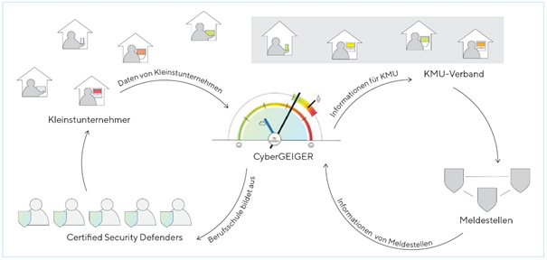 In der Schweiz wird ein erstes Pilotprojekt gestartet: Schweizer Lernende können sich an ihrer Berufsschule als «Security Defender» zertifizieren lassen. Im Rahmen der Zertifizierung erleben sie Cyber-Attacken gegen Kleinstunternehmen und lernen, wie sich ein Unternehmen mit Hilfe von «GEIGER» schützen kann. Das Bewusstsein für Cyberrisiken und das Wissen über mögliche Gegenmassnahmen werden sie in ihren Ausbildungsbetrieb weitertragen.