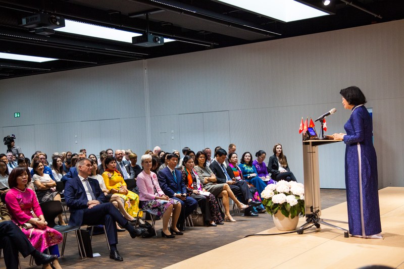 Vizepräsidentin H.E. Dang Ngoc Thinh während ihrer Rede im Studiensaal in Windisch.