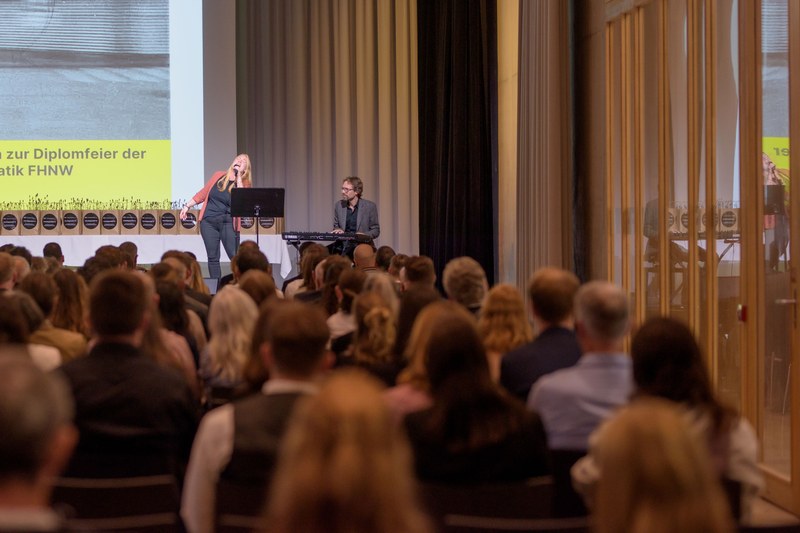 Die diesjährige Diplomfeier fand in der Aula des FHNW Campus Muttenz statt und erfolgte in zwei Gruppen. Prof. Nora Dainton, Leiterin des Master-Studienganges Virtual Design and Construction, führte durch den Abend. Neben einem Grusswort durch unseren Direktor Prof. Dr. Gerhard Schrotter standen auch Auftritte der Schweizer Soulsängerin Ira May und der Spoken-Word-Künstlerin Martina Hügi auf dem Programm.