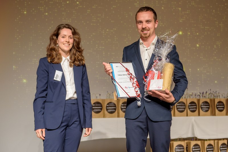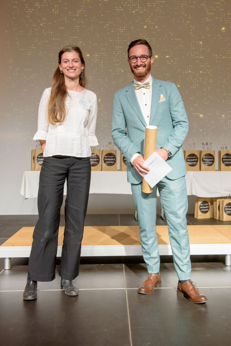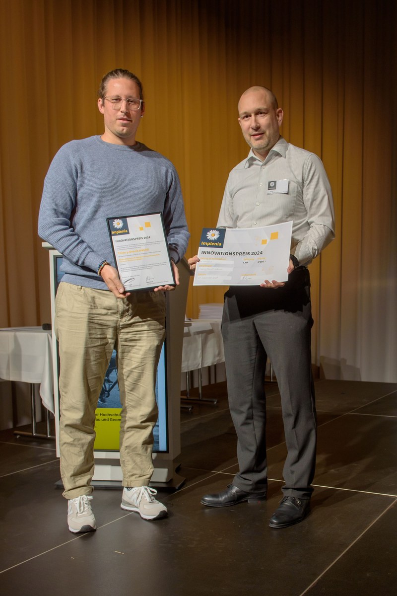 Thema der Bachelorarbeit: «Tiefliegende Injektionssohlen - Entwicklung eines Projekt- und Qualitätsleitfadens» - Preisträgerin und Preisträger: Leonie Stalder und Lars Bürgler