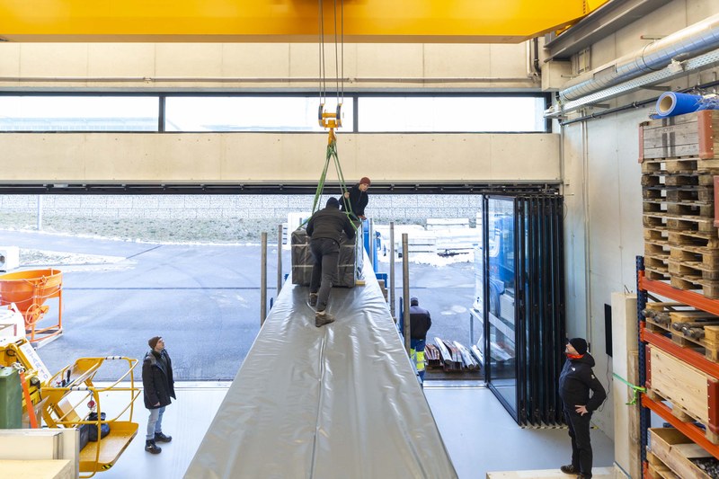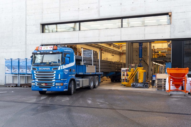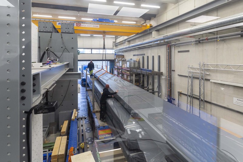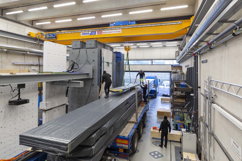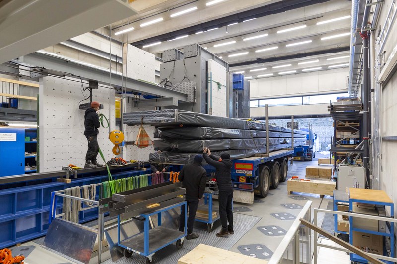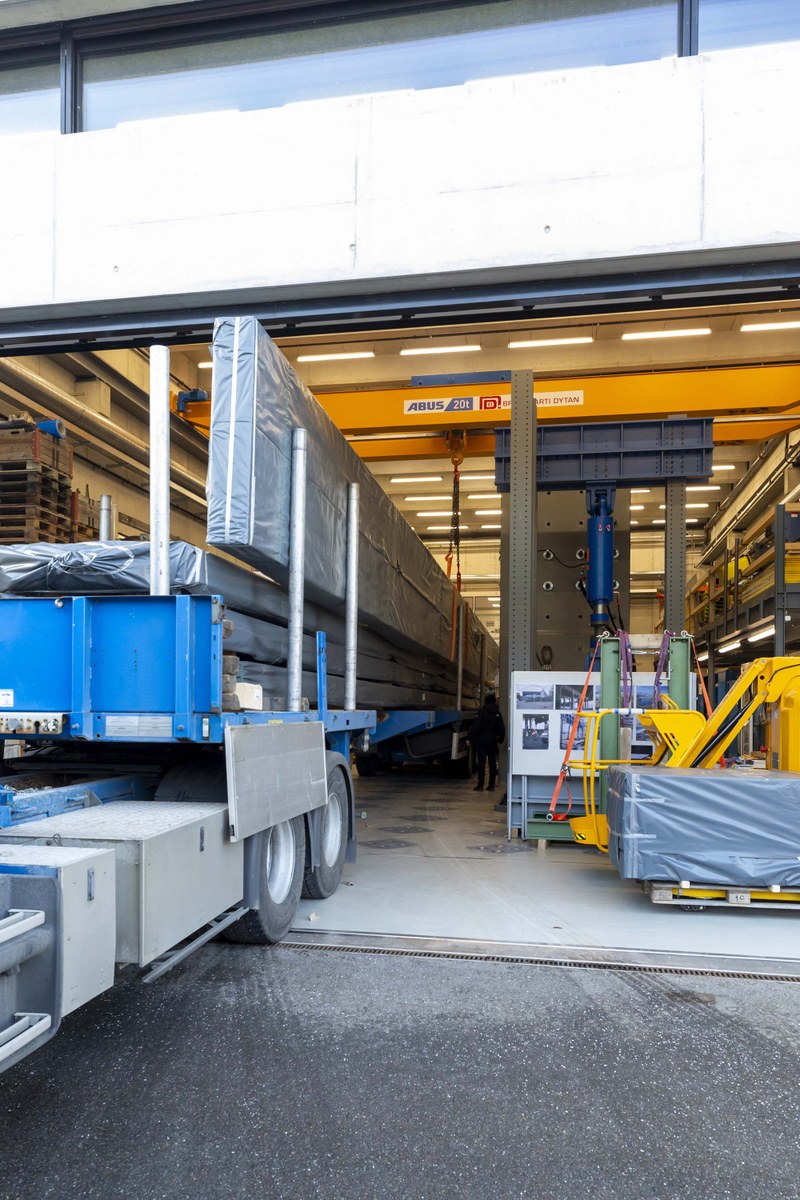 Das Team des Baulabors FHNW steht vor einer neuen spannenden Aufgabe: Gestern wurden vier Holzträger mit einer beeindruckenden Länge von 25 Metern und einer Höhe von 1,40 Metern geliefert, die nun im Baulabor vorgespannt und auf ihr Tragverhalten hin untersucht werden.