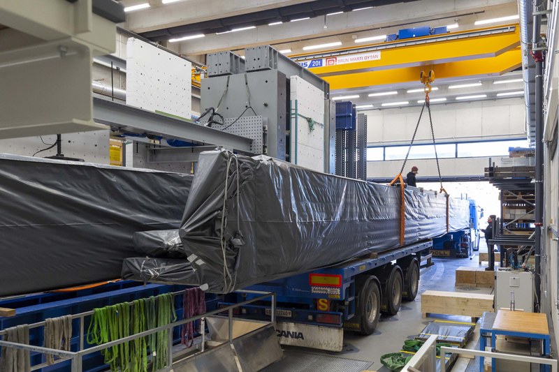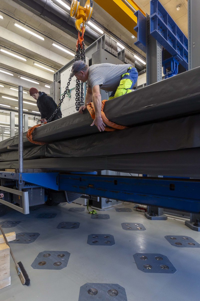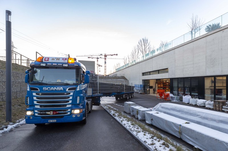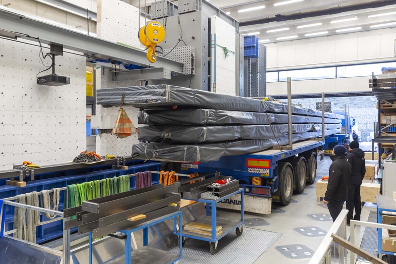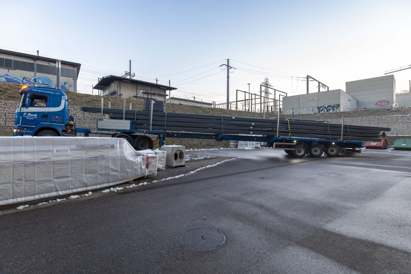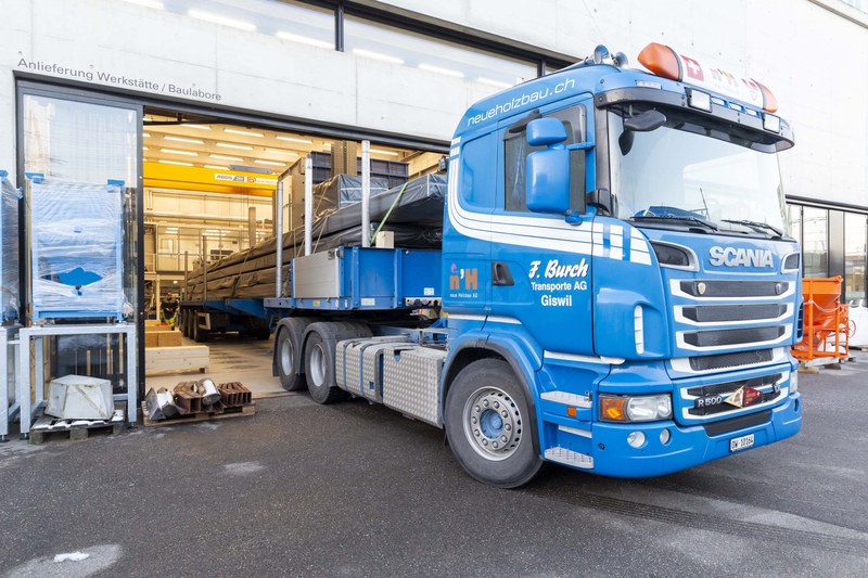 Das Team des Baulabors FHNW steht vor einer neuen spannenden Aufgabe: Gestern wurden vier Holzträger mit einer beeindruckenden Länge von 25 Metern und einer Höhe von 1,40 Metern geliefert, die nun im Baulabor vorgespannt und auf ihr Tragverhalten hin untersucht werden.