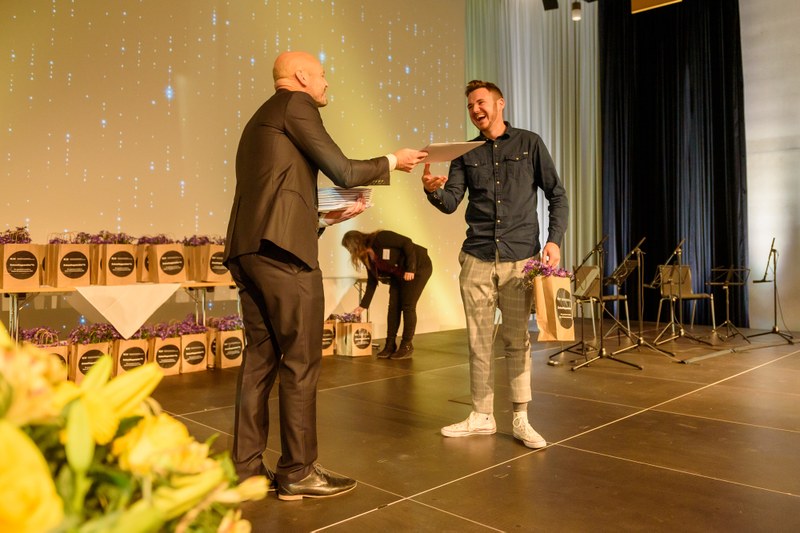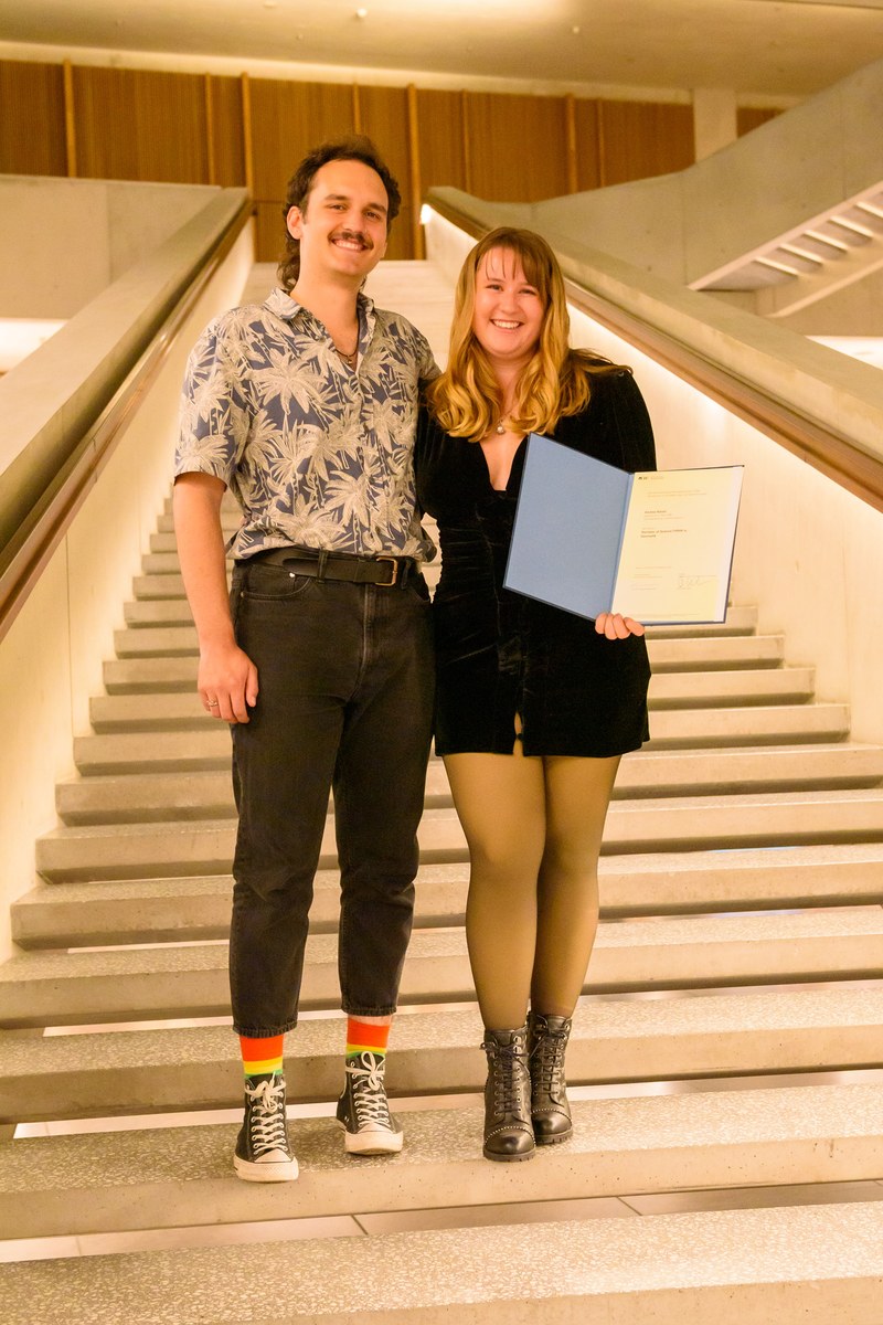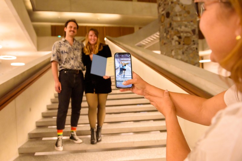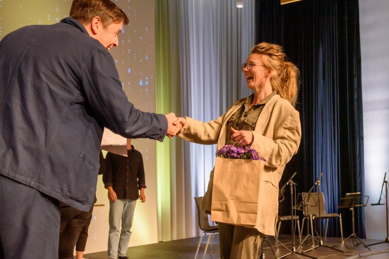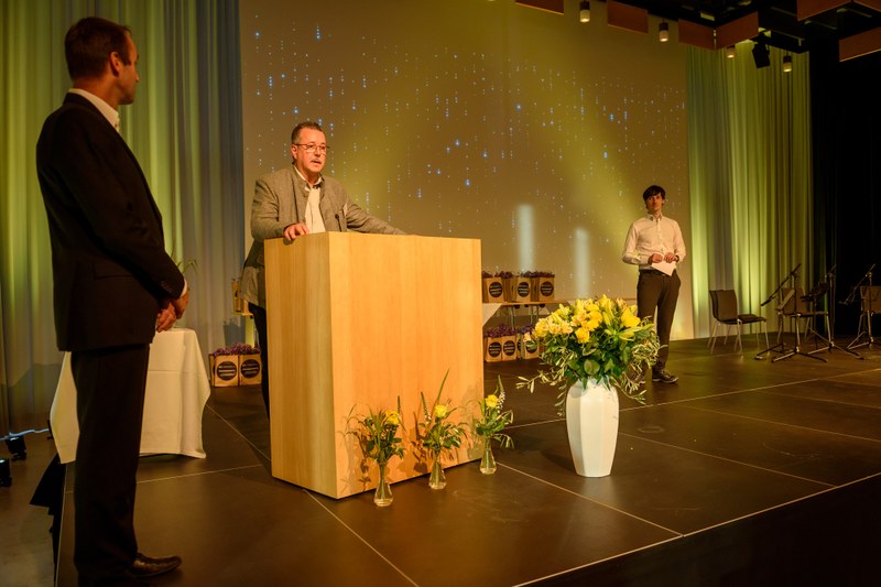 Die diesjährige Diplomfeier fand in der Aula des FHNW Campus Muttenz statt und wurde zudem live gestreamt. Christina Klausener, Leiterin Marketing und Kommunikation der Hochschule, führte durch den Abend und Prof. Ruedi Hofer, Direktor der Hochschule, schaltete sich remote zur Feier hinzu. Im gemeinsamen Gespräch blickten beide auf die vergangenen Semester zurück und hoben die grosse Leistung und Flexibilität der Absolvent*innen während dieser von der Pandemie geprägten Zeit hervor.