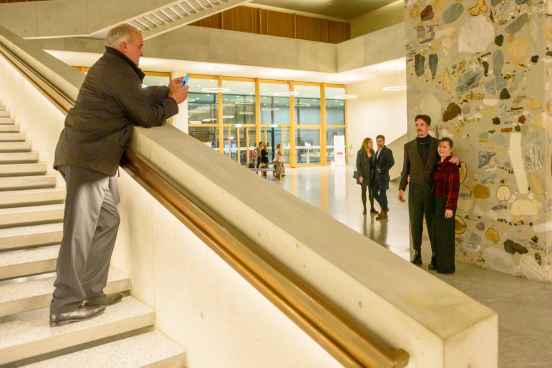 Für viele Lacher sorgte der Burgdorfer Remo Zumstein, der mehrmaliger Vize- und Schweizermeister im Poetry Slam ist und die Feier humorvoll umrahmte. Besonders in Erinnerung bleiben wird wohl dessen Schlusswort: «FHNW – das steht für: Feiert heute Nacht weiter!». Die Basler Sängerin und Songwriterin Anna Rossinelli sorgte in Begleitung des «Basel Celloquartetts» der Hochschule für Musik FHNW zudem für einen stimmungsvollen Ein- und Ausklang.