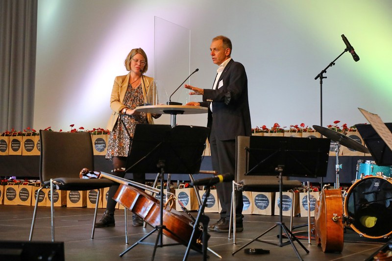 Die diesjährige Diplomfeier wurde im hybriden Format durchgeführt und live auf YouTube gestreamt. Rund 300 Teilnehmende feierten vor Ort am FHNW Campus Muttenz, während weitere Angehörige via Livestream mit dabei sein konnten. Prof. Ruedi Hofer, Direktor der Hochschule, und Christina Klausener, Leiterin Marketing und Kommunikation der Hochschule, führten durch den Abend. Hofer wies dabei unter anderem darauf hin, dass die Schule nur dank dem grossen Einsatz der Studierenden trotz Pandemie jederzeit offenbleiben konnte und dankte diesen sowie ihren Angehörigen für Ihr ausserordentliches Engagement in dieser bewegten Zeit.