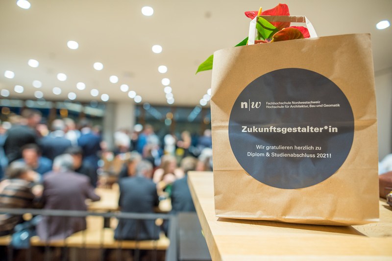 Die Hochschule für Architektur, Bau und Geomatik FHNW gratulierte allen Absolventinnen und Absolventen mit einem Geschenk, das die Aufschrift «Zukunftsgestalter*in» trug. In diesem Sinne gratulieren wir allen nochmals herzlich zum erfolgreichen Studienabschluss und freuen uns auf die künftige Gestaltung der bebauten Umwelt durch unsere Diplomierten.