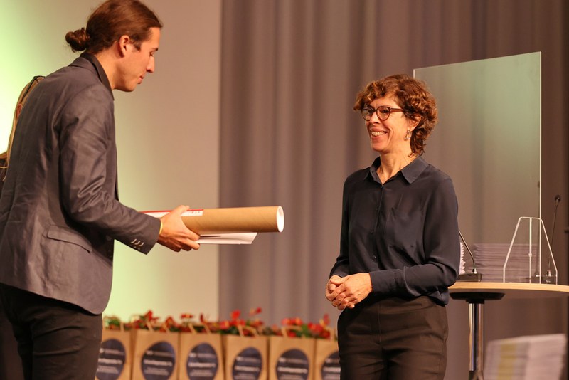 Am Freitag, 1. Oktober, haben die Instituts- und Studiengangleitenden der Hochschule für Architektur, Bau und Geomatik FHNW ihre ehemaligen Studierenden diplomiert. Wir gratulieren den 122 Absolventinnen und Absolventen ganz herzlich und freuen uns, dass neun von ihnen zusätzlich mit Preisen unserer Industriepartner*innen und der Berufsverbände ausgezeichnet wurden.