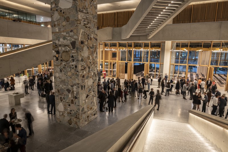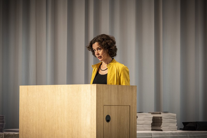 Mit rund 450 Besucher und Besucherinnen war der Anlass sehr gut besucht. Nicht nur Angehörige der Diplomandinnen und Diplomanden, sondern auch Vertreterinnen und Vertreter aus Wirtschaft, Berufsverbänden, öffentlichen Institutionen und der Direktion der FHNW nahmen an der Diplomfeier in der Aula des neuen FHNW Campus Muttenz teil. Sie wurden von Prof. Ruedi Hofer, dem Direktor der Hochschule sowie Christina Klausener, Leiterin Marketing und Kommunikation der Hochschule, durch den Abend geführt. Die Rede zur diesjährigen Diplomfeier hielt Architektin und Fachjournalistin Judit Solt, Chefredaktorin der Schweizerische Bauzeitung TEC 21.