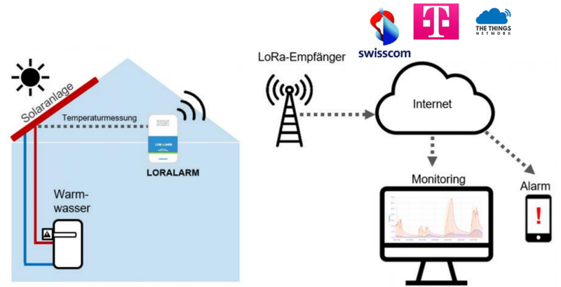 Das automatisierte Monitoring von thermischen Solaranlagen dient dazu, Fehlfunktionen zu vermeiden. Im Projekt LoCoSol (Low-Cost Monitoring von thermischen Solaranlagen) wurde ein maschinell lernender Algorithmus (MLA) entwickelt, der in der Lage ist, den Betriebszustand von solarthermischen Anlagen zu beurteilen und Fehlfunktionen zu identifizieren. Mittels LoRaWAN (Long Range Wide Area Network) werden die Messdaten eines Temperatursensors sowie die Bestrahlungsstärke und Umgebungstemperatur einer Wetterstation kommuniziert.