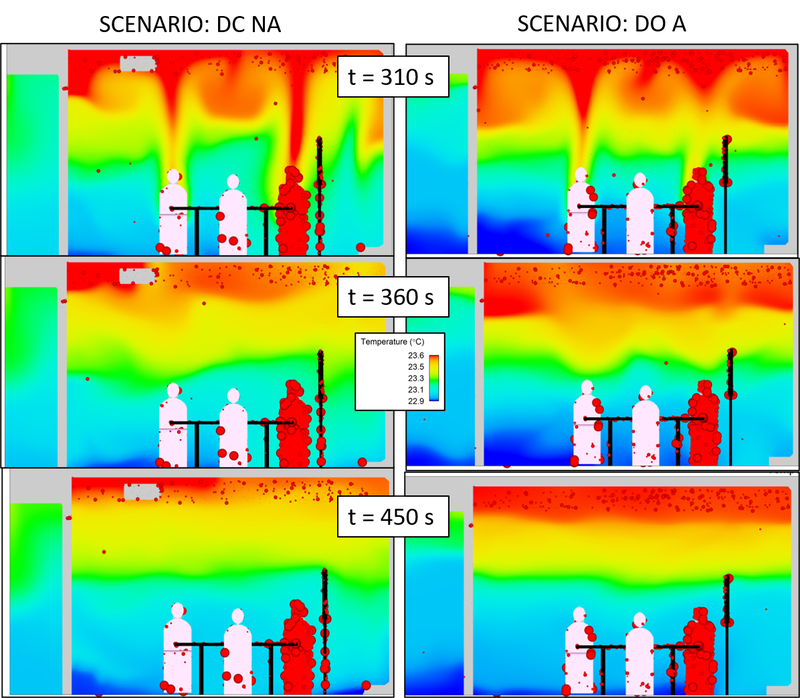 The research project includes an extensive literature survey to provide information on necessary assumptions for the simulation. In a next step, necessary information specific to the ventilation of the building is gathered and a representative room is defined and modelled in the CFD software. The numerical results are checked/validated by measurements of the air velocity in the vicinity of the air inlet. The leading questions for the CFD simulations are to provide tentative operation guidelines for meeting rooms in the KUBUK.