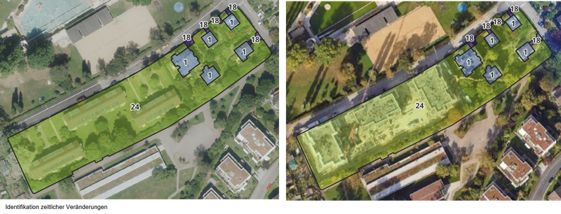 - Vorteil: Subparzellengenaue Erkennung, auch unter Laubbäumen (Winteraufnahmen), Erkennung zeitlicher Veränderungen