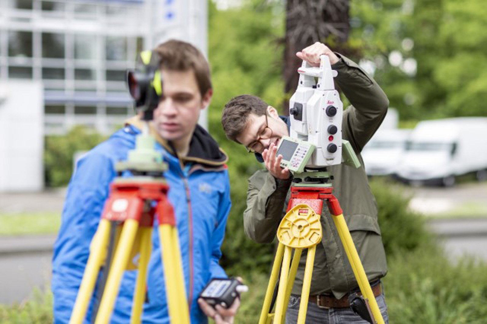 Im Bachelor-Studiengang Geomatik erlernen Studierende den Umgang mit einem Tachymeter.