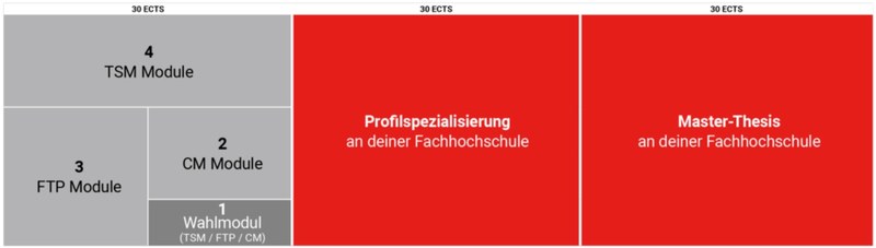 - 30 ECTS durch die fachliche Vertiefung (Projektarbeiten, Vertiefungsmodule)