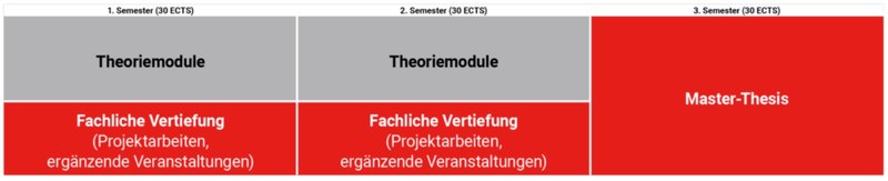 Du kannst das Master-Studium entweder in Vollzeit in drei Semestern oder in Teilzeit über eine entsprechend längere Dauer absolvieren. Wenn du dich für ein Teilzeitstudium entscheidest, stehen dir verschiedene Möglichkeiten offen, Arbeit und Studium flexibel auf die Semester zu verteilen.