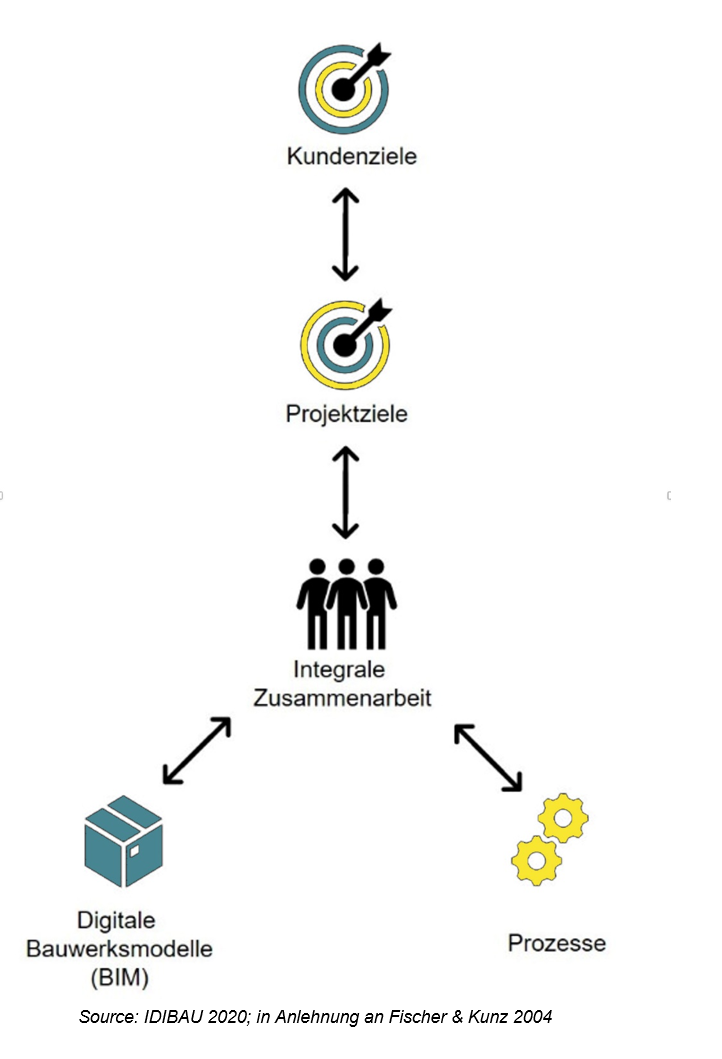 VDC ist nicht mit «Building Information Modelling» (BIM) gleichzusetzen. BIM beschreibt die Erzeugung und Verwaltung von digitalen Bauwerksmodellen [SIA, 2017] und ist damit nur ein Element von VDC. Das Framework «Virtual Design and Construction» reicht darüber hinaus, da es ebenso die integrale Zusammenarbeit, die Zielvereinbarungen sowie die dafür geeigneten Prozesse und Organisationsformen umfasst. Bei VDC ist ein gutes Teamwork essenziell, denn nur so wird die integrale Zusammenarbeit möglich.