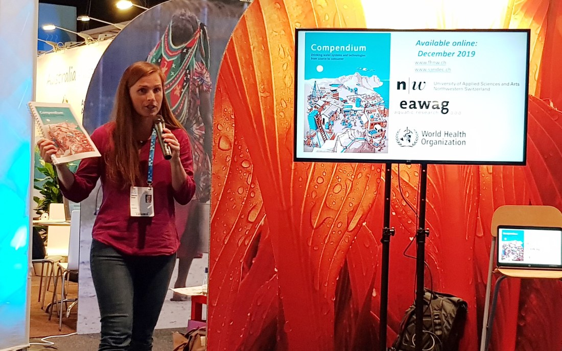 Trinkwasserexpertin Maryna Peter von der Hochschule für Life Sciences FHNW stellte an der World Water Week 2019 in Stockholm, dem führenden globalen Event zum Thema Wasser, das Trinkwasser-Handbuch vor.