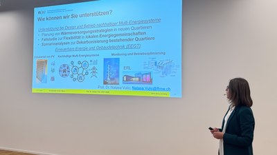 Prof. Dr. Natasa Vulic, Leiterin des Fachbereichs Erneuerbare Energien und Gebäudetechnik am Institut Nachhaltigkeit und Energie am Bau INEB FHNW, ordnete diese Ansätze fachlich ein und spannte den Bogen von der Technologie zur planerischen Entscheidungslogik.