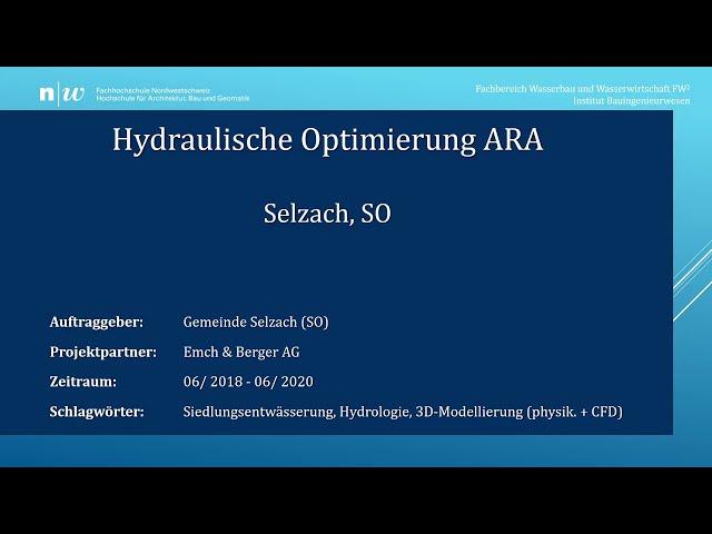 SelzachHydraulische Optimierung des neuen Entlastungskanals, Stauraumes und Spezialbauwerks mittels 3D und Labormodellierung.