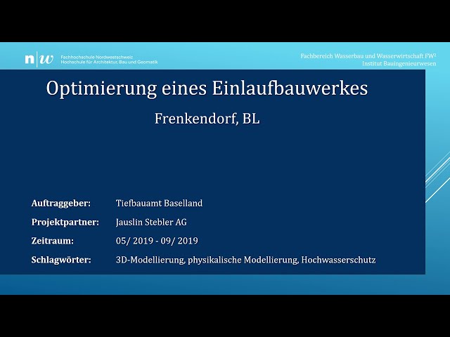 Optimierung eines Einlaufbauwerks in Frenkendorf mit 3D und physikalischer Modellierung.
