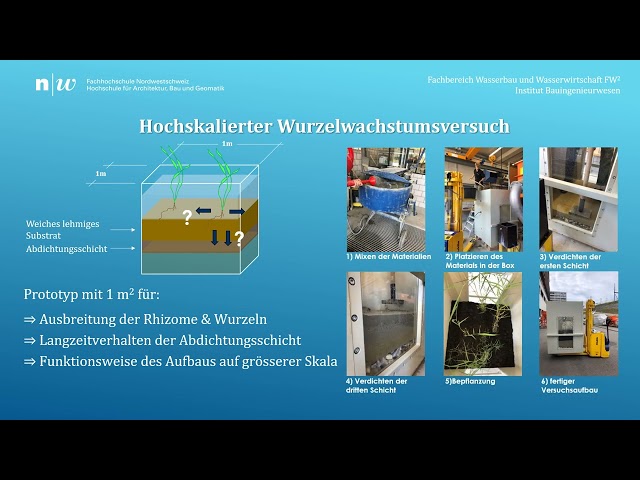 - Abschliessend wurde die vorgesehene Abdichtung der Eisweiher, vor dem Hintergrund möglicher Durchdringungen der Weiherabdichtung durch das Schilfrohr (Phragmites australis) untersucht. Hierbei wurden präventive Massnahmen erarbeitet, indem das Wachstumsverhalten gegenüber der Abdichtungsschicht untersucht wurde und reaktive Massnahmen definiert.