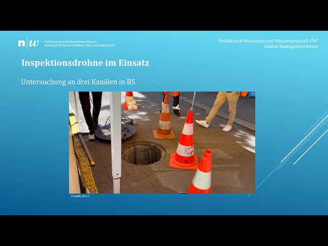Das Abwassernetz ist eine wichtige Infrastruktur, die einen effizienten Unterhalt erfordert. Zur Beurteilung des Ist‐Zustandes eines Abwassernetzes werden Schadensklassifizierungen i.d.R. in festen periodischen Abständen vorgenommen, erfolgen aber meist noch «konventionell» (d.h. manuelle, visuelle Analyse). Im Rahmen dieses Forschungsprojektes wurde das Potenzial des Einsatzes von Drohnen zur effizienten Zustandsbeurteilung und Aufnahmedokumentation von Abwasserkanälen untersucht. Die Auswertung der Aufnahmen durch "machine learning"‐ Algorithmen, sowie die moderne Dokumentation ergaben vielversprechende Resultate, die ein hohes Potenzial für die Weiterentwicklung aufweisen.