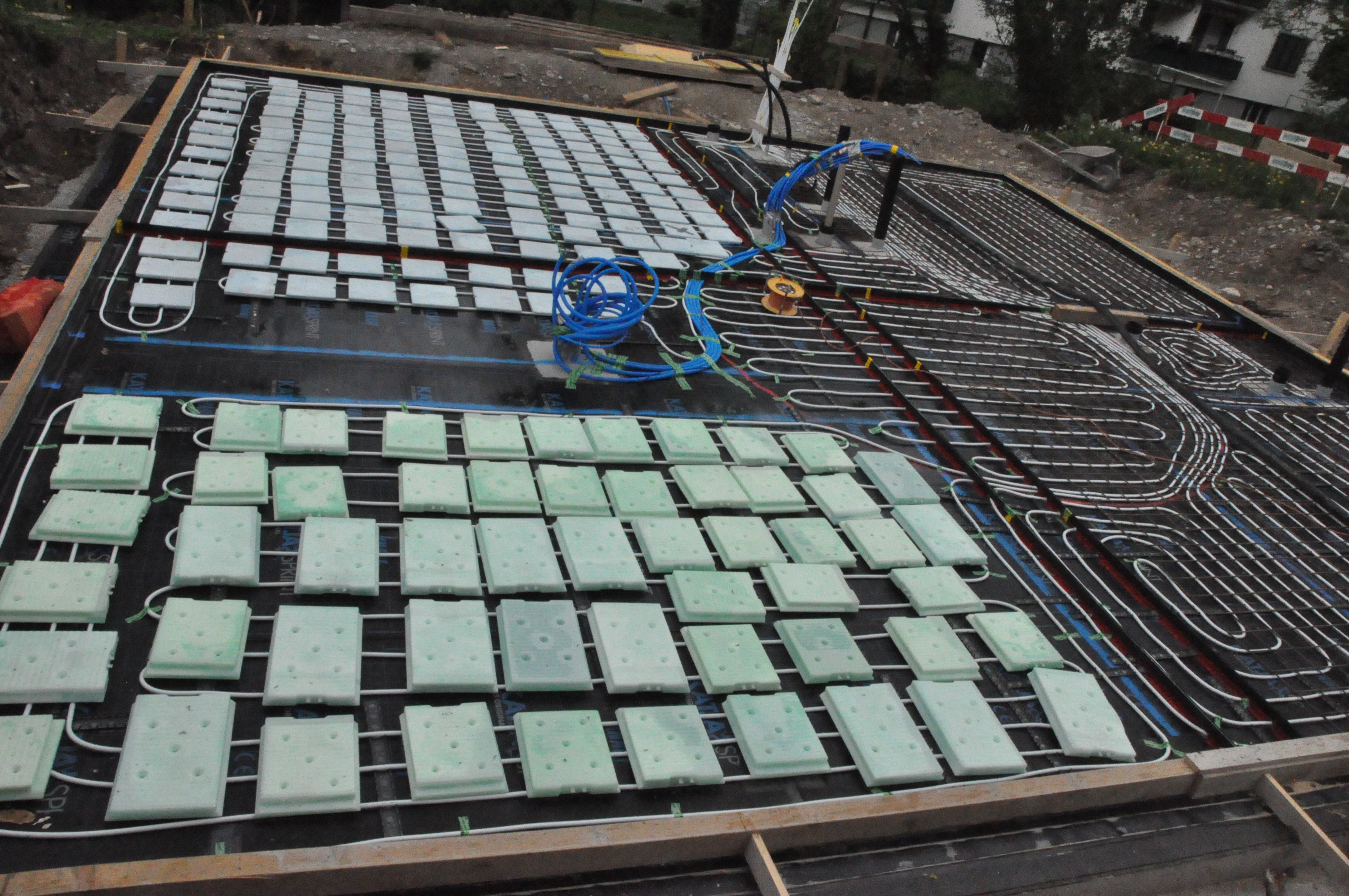 In der nun gebauten Variante gibt es eine Wärmepumpe sowie Erdwärmekörbe. Das sind im Prinzip Gartenschläuche, die in Form eines Korbes in die Erde eingelassen werden und dort Wärme je nachdem abgeben oder aufnehmen. Gerade bezüglich der Erdwärmekörbe gab es von Seiten der Behörden erst eine gewisse Skepsis, mit Sicherheitsauflagen durften sie dann aber – erstmalig in Basel – umgesetzt werden.