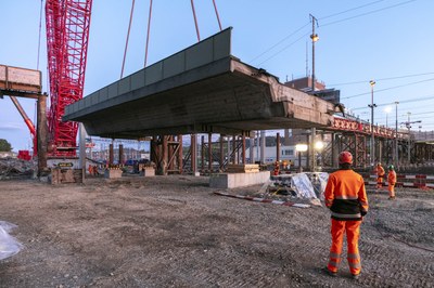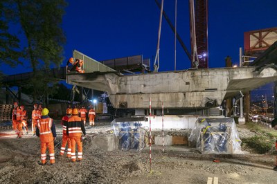 Am 14. und 15. September 2024 wurde ein Teil der Grenzacherbrücke Nord unmittelbar neben dem FHNW Campus Muttenz durch den grössten Raupenkran der Schweiz in vier Elementen herausgehoben. Das Baulabor FHNW ist mit einem Grossversuch involviert.