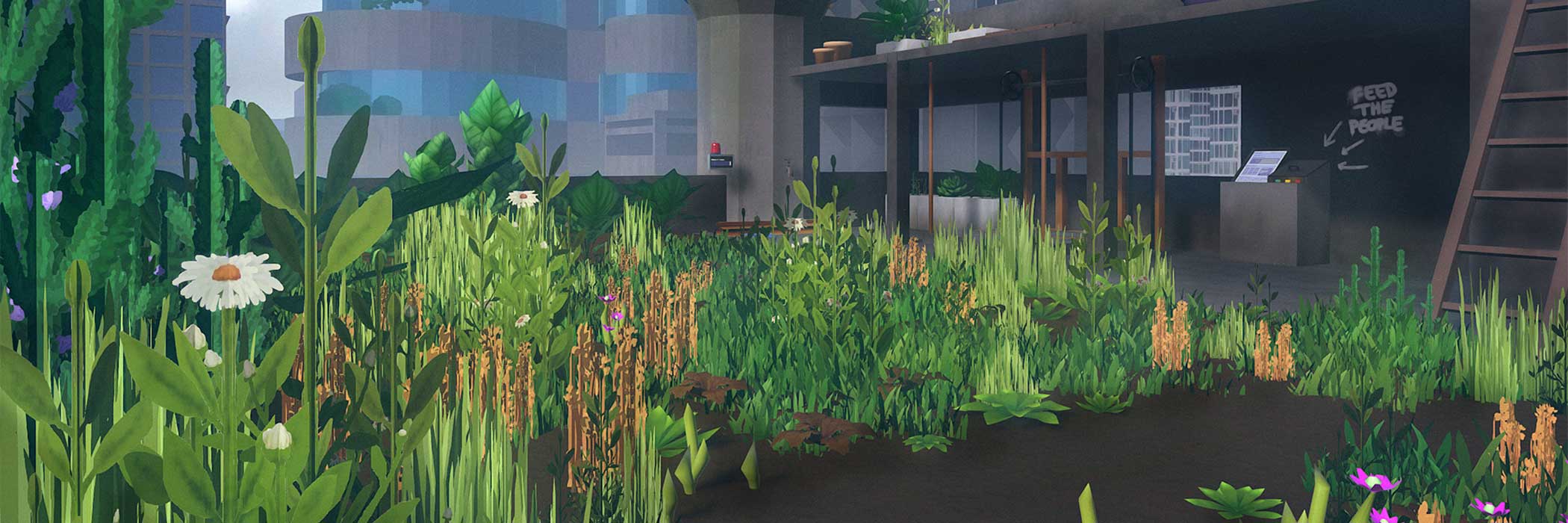«Skyfarm» spielt auf dem Dach eines Wolkenkratzers einer überfluteten Megacity in der Postapokalypse. Die Spielenden haben die Aufgabe, ihren Garten zu pflegen, Lebensmittel zu ernten und die Biodiversität zu erhöhen. Durch Tauschhandel können sie Materialien mit anderen Dachgärtner:innen tauschen, um neue Pflanzen und Gartenelemente freizuschalten.
