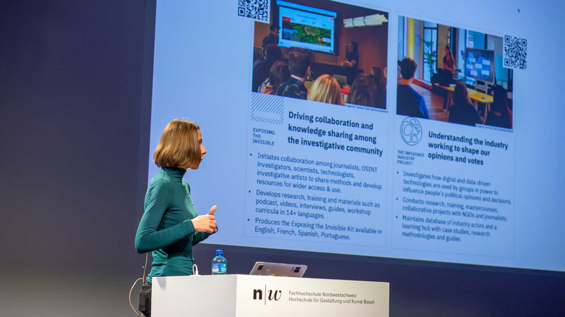 Die 14 Referent:innen kamen sowohl von international anerkannten Institutionen wie der Neuen Zürcher Zeitung, Border Forensics, Le Monde, Open Facto, BBC Eye Investigations, Tactical Tech und ReCNTR als auch von renommierten Universitäten, darunter die Universität Leiden, die HEAD Genf, die Università di Milano und die Universität von São Paulo.