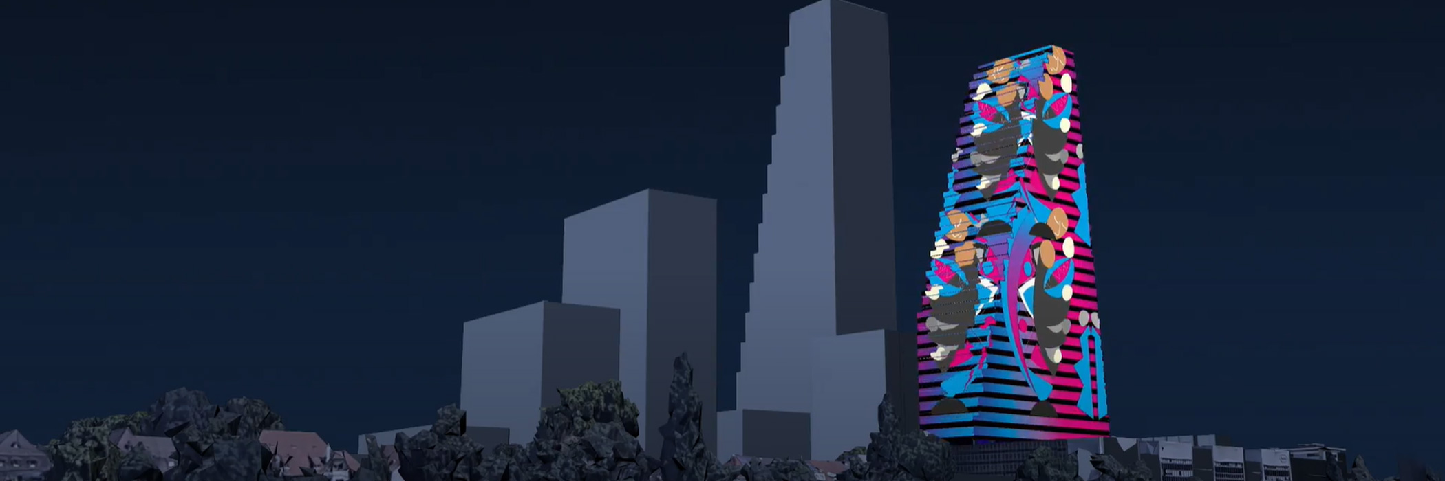 12 Animationen von HGK-Studierenden zum Thema Humanity wurden an vier Abenden im September 2021 am zweithöchsten Gebäude der Schweiz - dem Roche-Turm - projiziert.