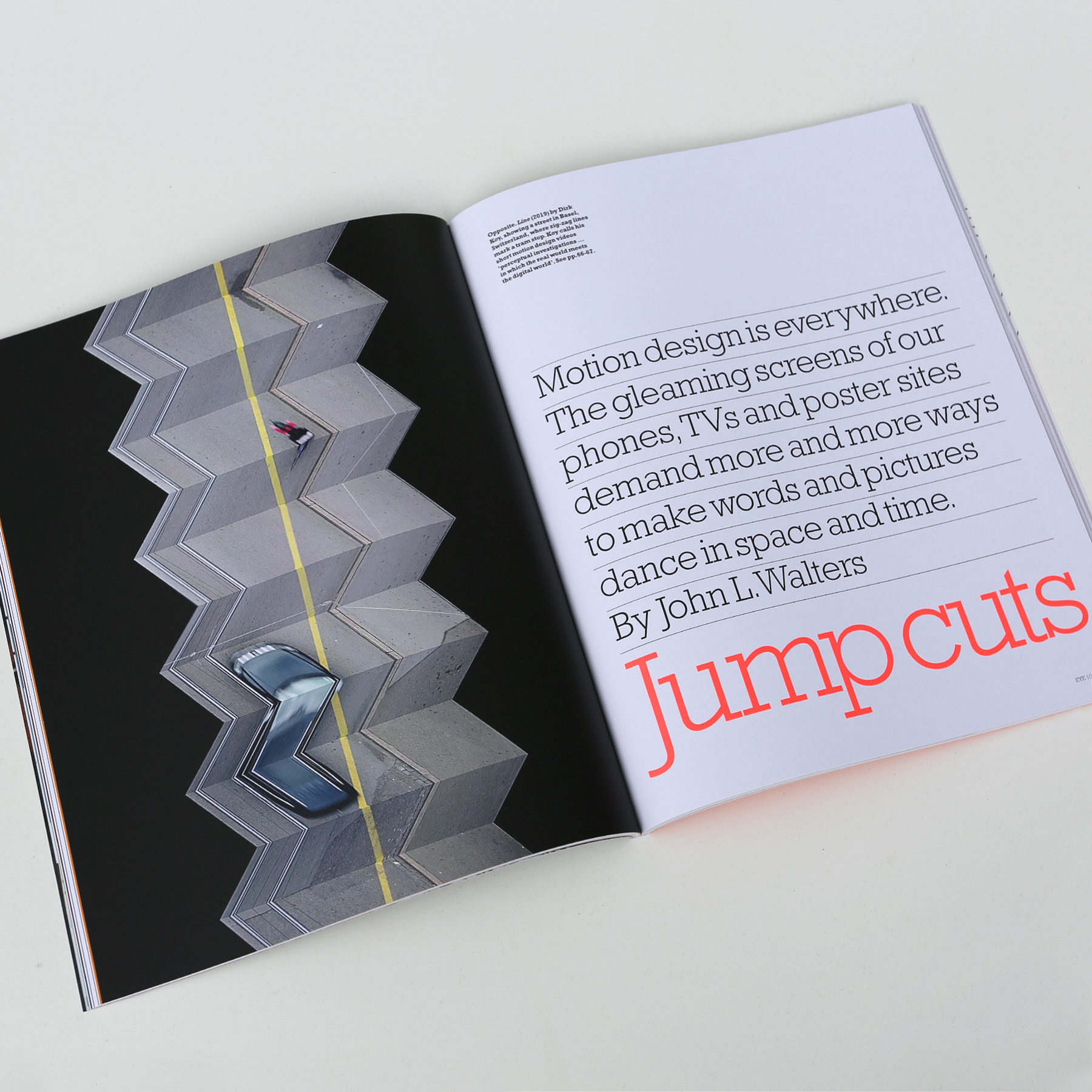 Das Cover verweist auf den Hauptartikel des Magazin mit dem Titel «Jump Cuts», in welchem John L. Walters die Rolle von Motion Design in der Gegenwart beleuchtet: «Motion Design ist überall. Die glänzenden Bildschirme unserer Telefone, Fernseher und Plakatseiten verlangen nach immer mehr Möglichkeiten, Worte und Bilder in Raum und Zeit tanzen zu lassen.»
