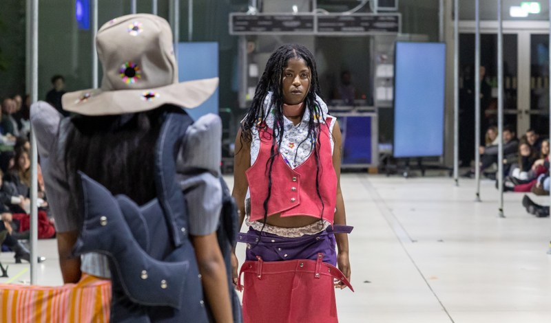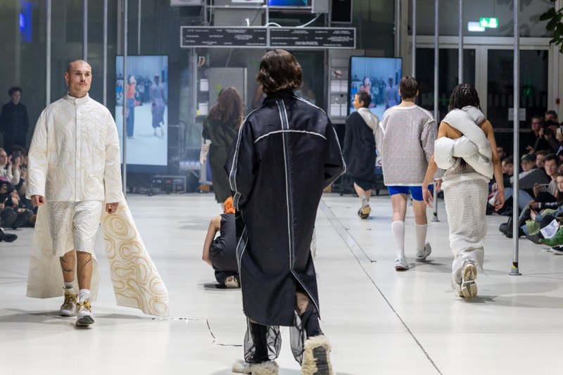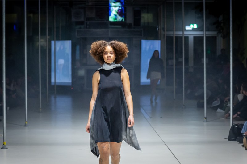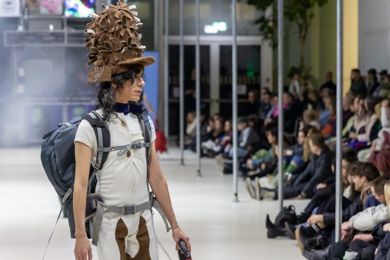 Am 11. Februar 2023 haben 23 Designer:innen des Studiengangs BA Mode-Design am Institute Contemporary Design Practices (ICDP) ihre Abschluss-Arbeiten inszeniert und performt. Der Live Act ging im Hochhaus der HGK Basel FHNW auf zwei Etagen vor mehr als 1000 Zuschauer:innen über die Bühne.
