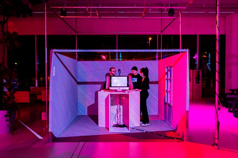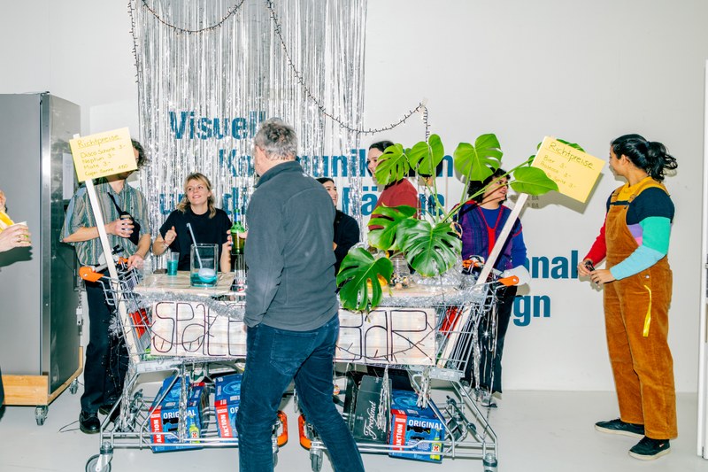 Im CIVIC, dem neuen Diskurs- und Ausstellungsort im Foyer der HGK, eröffneten mit dem Open House gleich zwei neue Infrastrukturen: das Ausstellungshäuschen und der Messy Kiosk. In diesem Kontext luden Studierende zu einer Tauschaktion, Unterhaltungen und Kaltgetränken ein.