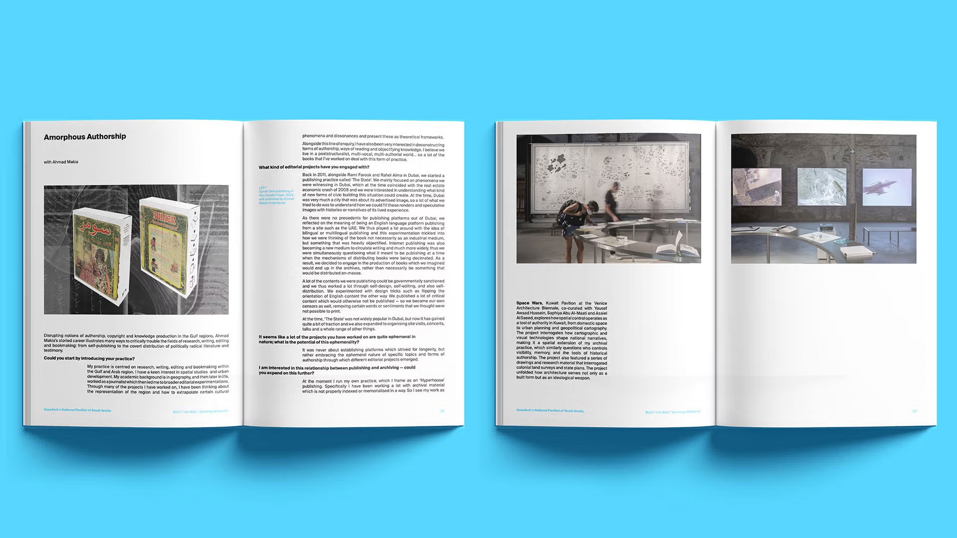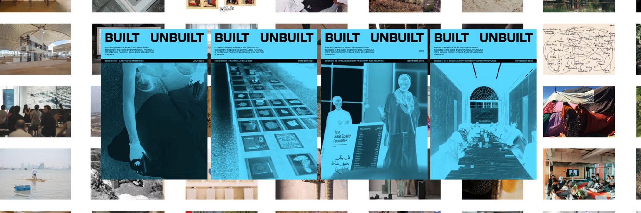 Der Reader BUILT / UNBUILT ist ein redaktionelles Projekt, das von KoozArch entwickelt wurde, um das von Beatrice Leanza kuratierte öffentliche Vortragsprogramm für den Pavillon Saudi-Arabiens auf der 19. Internationalen Architekturausstellung in Venedigt zu begleiten. Das Projekt wurde sowohl als Dokumentation als auch als Erweiterung des Programms konzipiert und umfasst eine Reihe von vier speziellen Lesebüchern, die die Beiträge der öffentlichen Begegnungen sammeln, erweitern und kritisch einordnen. Die Reader vereinen die Stimmen, Positionen und Praktiken, die während vier öffentlicher Gespräche zwischen Juni und November 2025 im Pavillon und im Palazzo Diedo in Venedig zum Ausdruck kamen.