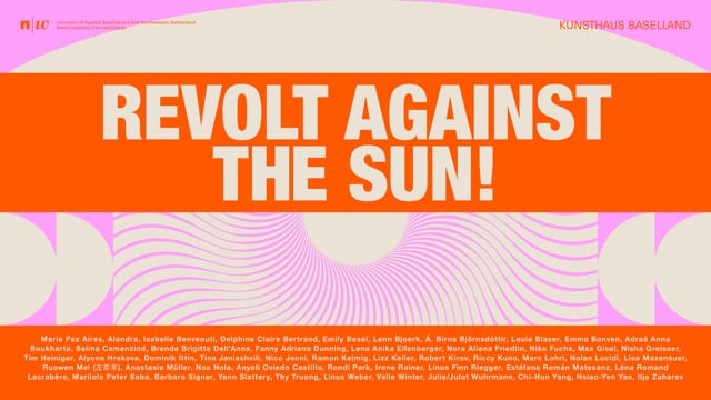 Im Rahmen der aktuellen Diplom-Veranstaltungsreihe NEXT Generation 2025 der Hochschule für Gestaltung und Kunst Basel FHNW präsentierte das Institute Art Gender Nature (IAGN) vom 30. August bis 14. September 2025 im Kunsthaus Baselland unter dem Titel «Revolt against the Sun!» Arbeiten seiner Bachelor- und Master-Absolvent:innen.