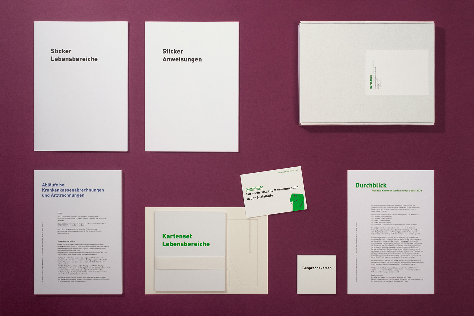 Im Projekt «Durchblick» entwickelten Dr. Paloma López Grüninger von der HGK Basel sowie Prof. Dr. Anne Parpan-Blaser und Dr. Christoph Imhof von Hochschule für Soziale Arbeit FHNW gemeinsam mit den Sozialdiensten Basel-Stadt und Dietikon sowie Studierenden des Master-Studiengangs Digital Communication Environments der HGK Basel visuelle Materialien für Beratungsgespräche in der Sozialhilfe.