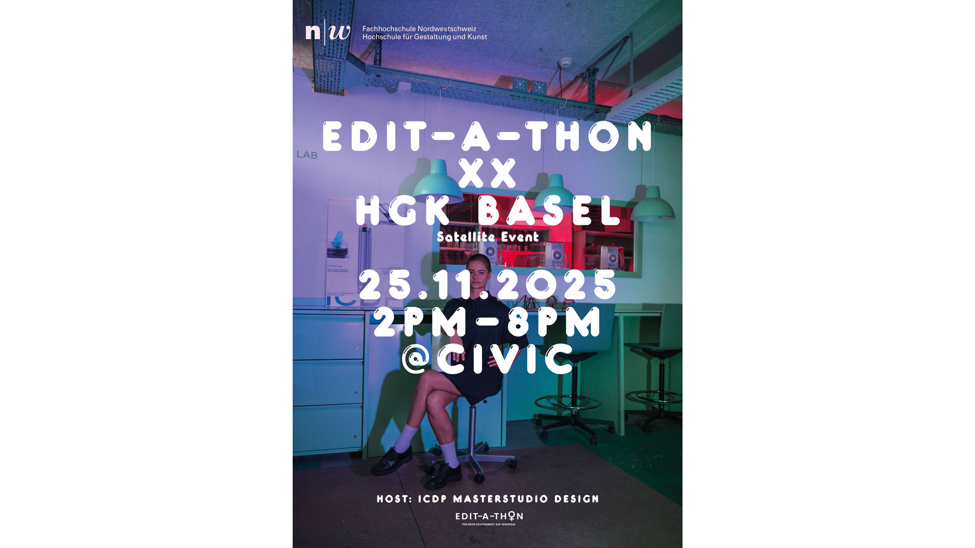 Das Masterstudio Design der HGK Basel ist Co-Gastgeber des Edit-a-thons, der am 25. November 2025 an verschiedenen Orten in der Schweiz stattfindet – mit dem Ziel, mehr Sichtbarkeit für Frauen auf Wikipedia zu schaffen.