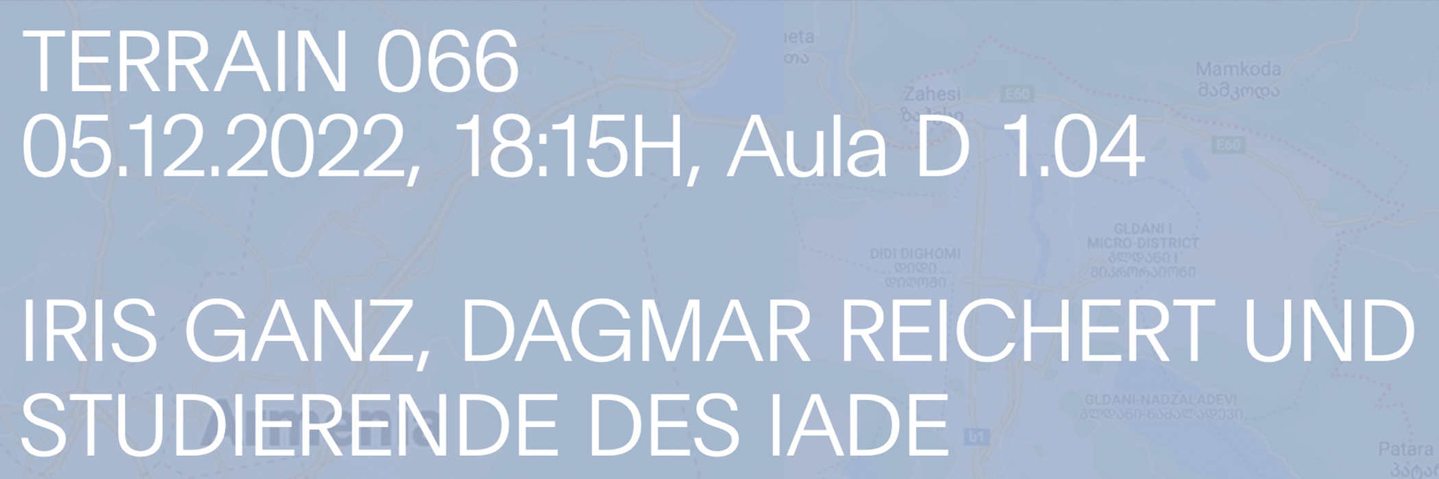 Terrain #066 vom Montag, 5. Dezember 2022, um 18.15 Uhr, in der Aula D 1.04 an der HGK Basel mit Dagmar Reichert (Geschäftsführerin artasfoundation), Iris Ganz (Dozentin IADE) sowie Studierenden des IADE.