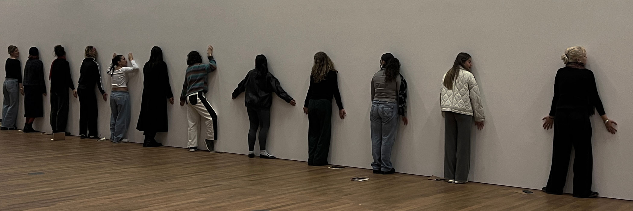 Foto: Kunstvermittlung im Schaulager® Münchenstein/Basel: Eine Gruppe Studierender führt Bruce Naumans «Body Pressure» (1974) durch.