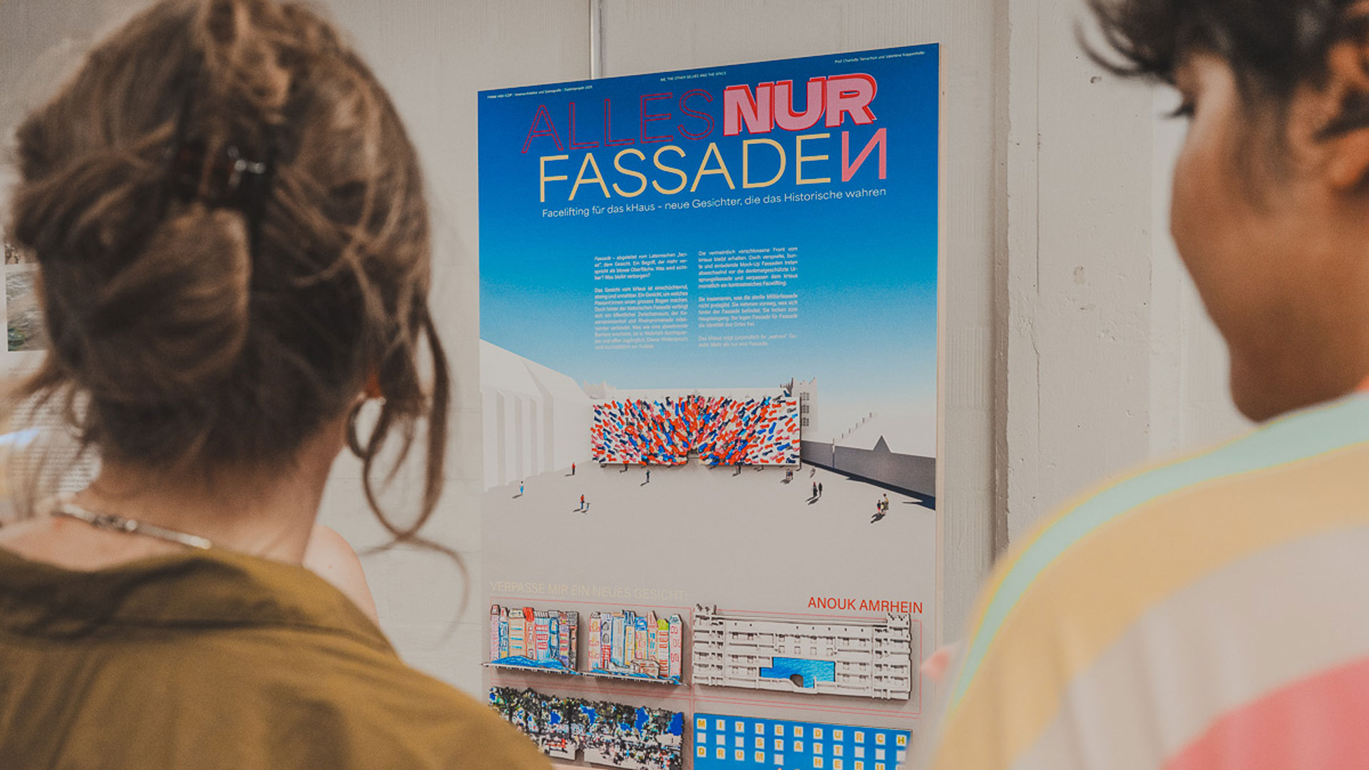 Die Arbeiten schaffen unter anderem konzeptuelle und programmatische Visionen für den Kasernenplatz, die Fassade und das kHaus. Die entstandenen Modelle und Plakate können im Rahmen der Ausstellung in der Plaza des kHaus frei besichtigt werden. Das Rahmenprogramm lädt dazu ein mit Studierenden, sowie Vertreter:innen des Studiengangs und des kHaus in Dialog zu treten.