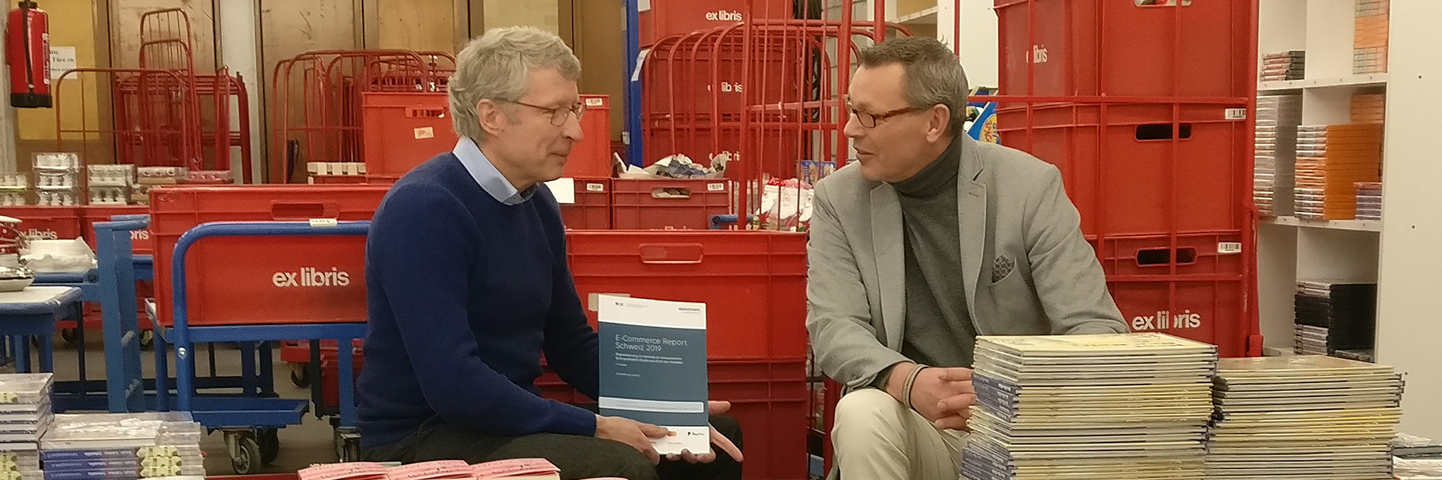 Titelbild: Prof. Ralf Wölfle (links) im Gespräch mit Daniel Röthlin, CEO von Ex Libris.