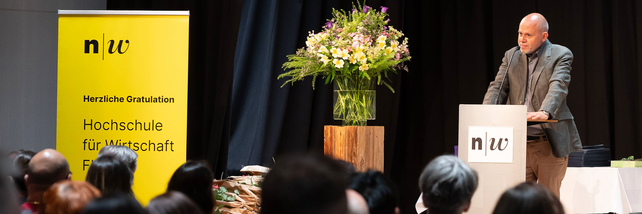 Diese «Würze», die Programmleiter Michael Baumann an der diesjährigen Abschlussfeier des Vorbereitungskurses Verwaltungsweiterbildung für die Eidg. Prüfung meinte, machen den Weiterbildungskurs neben den Hauptzutaten Lerninhalte, Stundenpläne, Prüfungen und Reflexionsberichte erst «geniessbar». Nämlich der intensive Kontakt der Teilnehmerinnen und Teilnehmer mit dem Weiterbildungssekretariat und den Dozierenden. Ebenso wurde die ständige Präsenz und Unterstützung durch die Programmleitung geschätzt, die bei Fragen und Problemen immer ansprechbar war und Lösungen fand. So war auch dieses Jahr der anspruchsvolle Vorbereitungskurs zu bewältigen und 69 Teilnehmende konnten an der Feier im Studiensaal der Fachhochschule Nordwestschweiz FHNW in Windisch ihr Abschlusszertifikat entgegennehmen.