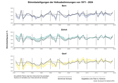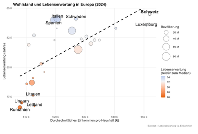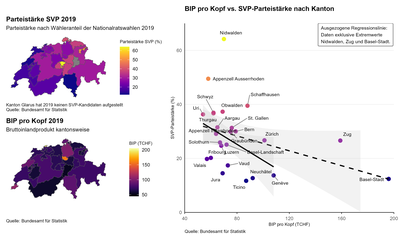 Im Rahmen der Projektwoche des Moduls Applied Data Science konnten 27 Studierende aus den Bachelorstudiengängen Betriebsökonomie und International Management wertvolle Erfahrungen in der Visualisierung von komplexen Datensätzen sammeln. Sie konnten sich aus der Fülle an öffentlich im Internet verfügbaren Datensätzen, etwa vom Bund, Eurostat oder auch den Kantonen, eine Fragestellung aussuchen um diese dann in der Programmiersprache R so aufzubereiten und zu visualisieren, dass die entstandene Grafik ohne erklärenden Begleittext verstanden werden konnte. Dabei wurde deutlich, dass jeder Datensatz seine eigenen Herausforderungen mit sich bringt, was den Studierenden viel Flexibilität bei der Lösungsfindung abverlangte, um ein ebenso ansprechendes wie interpretierbares Resultat zu erzielen.