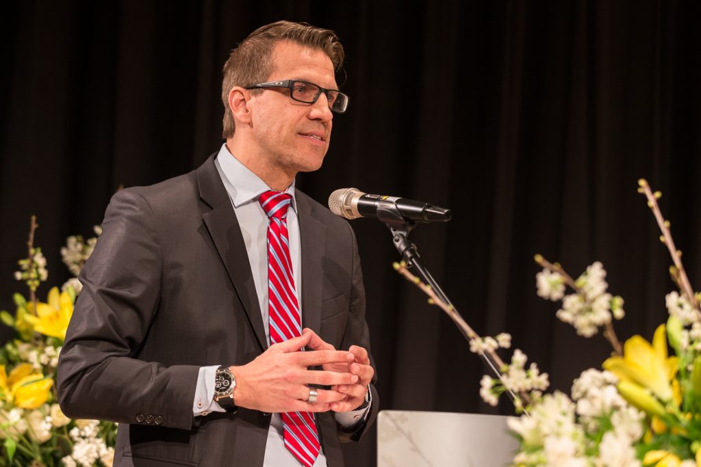 Der Diplomredner des Abends, Matthias Beuttenmüller, Leiter der Einwohnerdienste Stadt Solothurn und Mitglied des Fachausschusses für den Kanton Solothurn, gratulierte den Diplomierten für die Leistung, die sie in diesem berufsbegleitenden Lehrgang gezeigt haben. Er betrachtet den erfolgreichen Abschluss als einen Beweis, dass die Teilnehmenden über Resilienz, also psychische Belastbarkeit verfügten, die es ihnen ermöglicht habe, den Zusatzaufwand zu meistern. Auch im Beruf, im direkten Kundenkontakt in einer Gemeindeverwaltung gebe es Situationen, in denen eine psychische Belastbarkeit erforderlich und Stress kein Fremdwort sei. Dabei gebe es sowohl den negativen Stress, der – wenn er chronisch werde – als Disstress zu gesundheitlichen Problemen führen könne, als auch den positiven Stress, der eine hohe Aufgaben- bzw. Arbeitsbelastung die Freude macht, als Bereicherung empfinden lasse. Es sei eine Frage der Einstellung, die jeder und jede Einzelne selbst steuern könne. Dazu wirke für den Diplomredner ein 5-Punkte-Programm am besten: