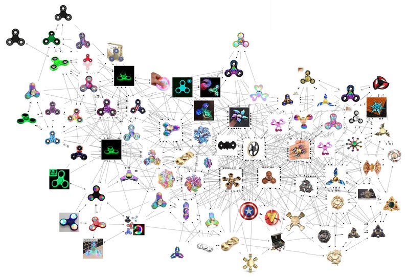 «Visual Analytics»: Die Vernetzung der Fidget-Spinner-Angebote auf Amazon visuell analysiert (Quelle: yasiv.com)