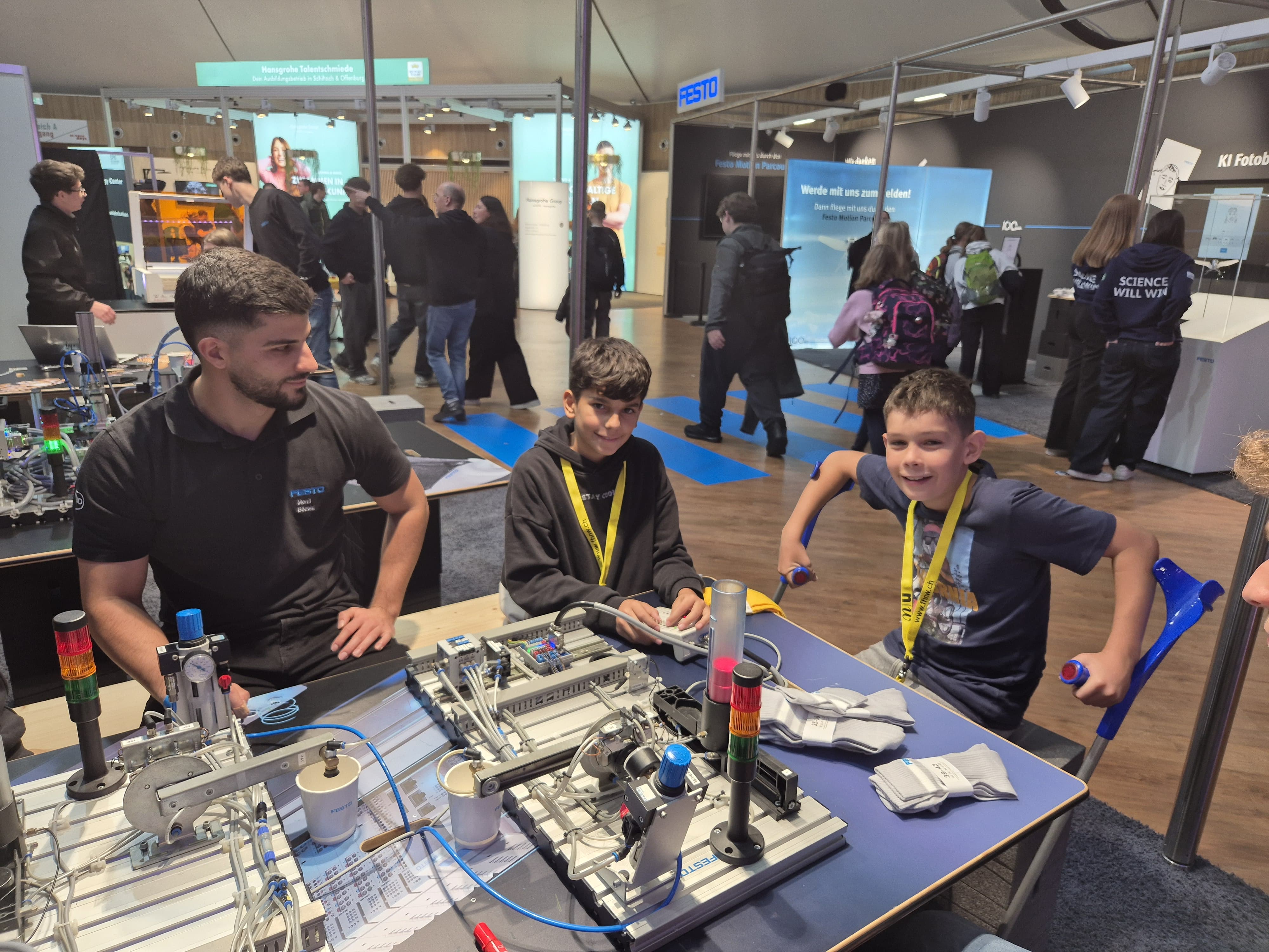 Im Confertainment Center erwartete die Schülerinnen und Schüler aus der Schweiz eine überwältigende Vielfalt an Experimenten, Präsentationen und Mitmachstationen von mehr als 90 Aussteller. Besonders beeindruckend waren die interaktiven Vorführungen in Chemie, Physik und Robotik, bei denen Wissenschaft hautnah erlebt werden konnte.