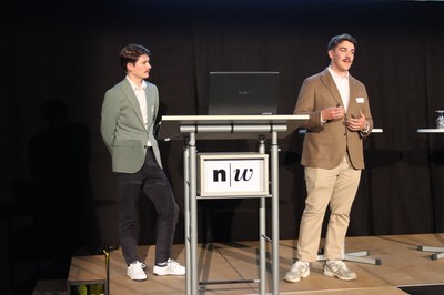 Im zweiten Programmteil stellten die WIng-Studierenden Benjamin Blanke und Jonas von Burg ihr Projekt «Smart Mobility Connect» vor. Die Arbeit entstand im Rahmen des Moduls Smart Mobility und basiert auf der Analyse realer Mobilitätsdaten. Ziel des Projekts war die Entwicklung einer multimodalen Mobilitätsplattform, welche Car-Sharing und regionale Verkehrsdienstleistungen verbindet. Die Studierenden erklärten, dass vor allem Nutzerfreundlichkeit, Effizienz und Flexibilität entscheidend dafür seien, wie Menschen Verkehrsmittel kombinieren und Mobilitätsentscheidungen treffen. Das Beispiel zeigte exemplarisch, wie Studierende am Standort Brugg-Windisch praxisorientierte Herausforderungen bearbeiten.
