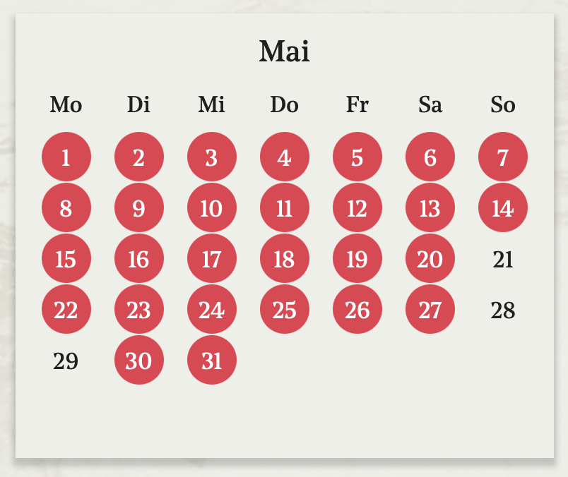 ...Veranstaltungskalender Eine Übersicht über alle Veranstaltungen im Mai finden Sie im Veranstaltungskalender. / All events in may in Veranstaltungskalender. |